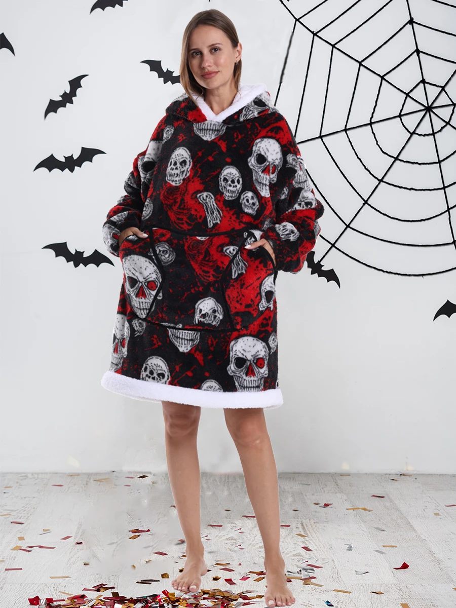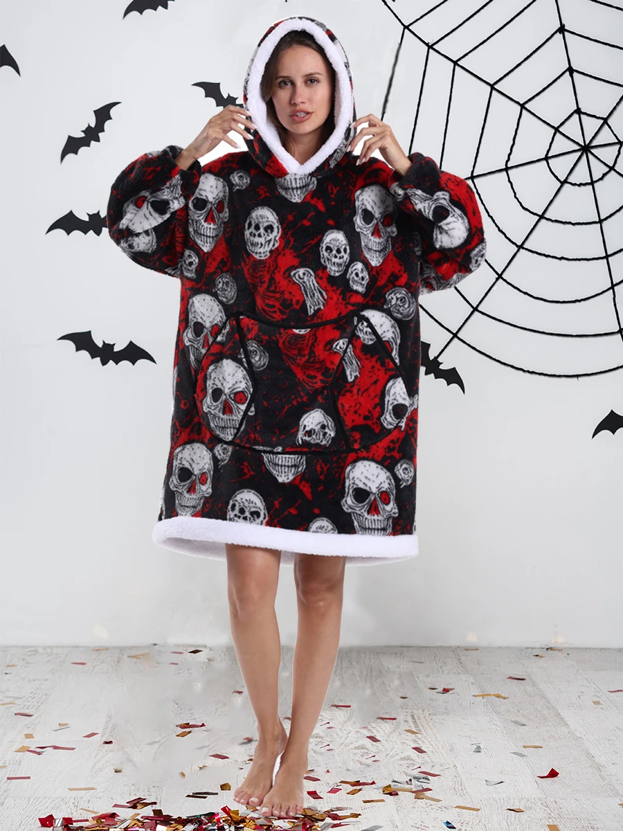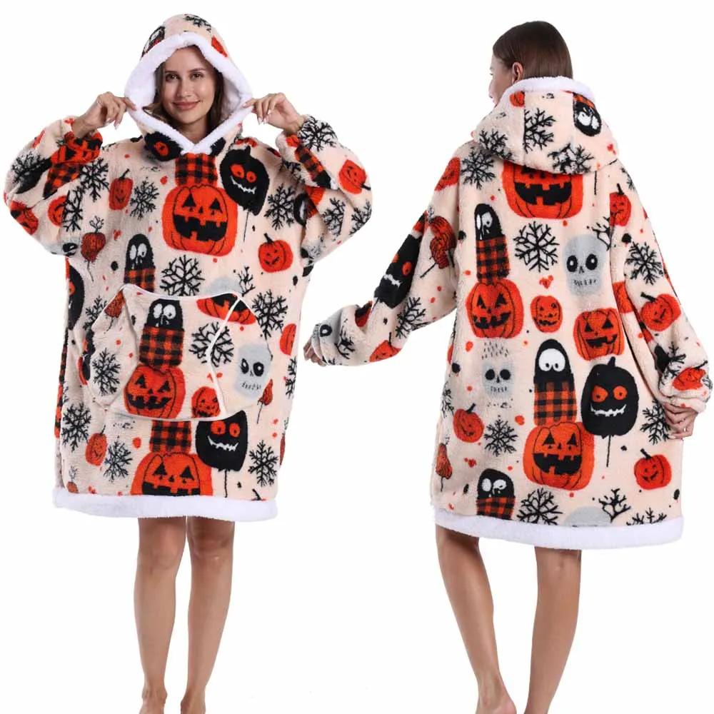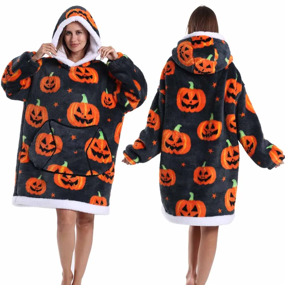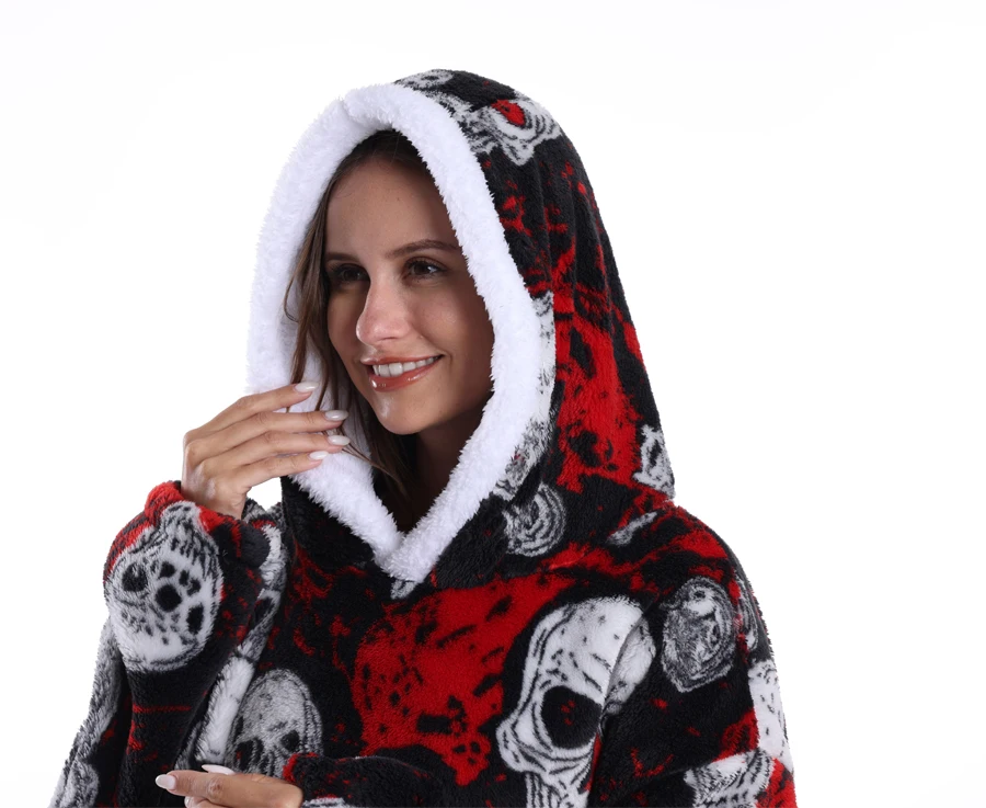 Hoodie Blanket Wearable for Adults Animal Plus Size Hoodies Men Women Clothes Winter Warm Thick Plush TV Blanket Pink Black Tops