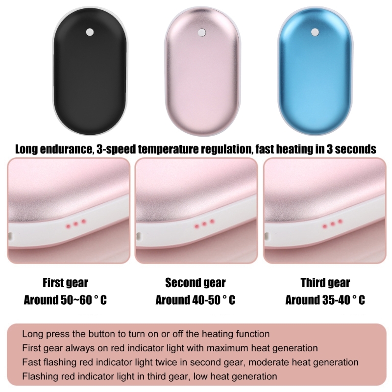 Portable Hand Warmer Rechargeable Pocket Heater 2-in-1 Function USB Charging Heater Hand Warmer Large Capacity